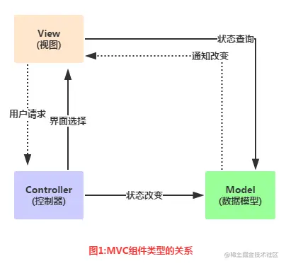 - Controller:控制器,作为model与view之间的枢纽,负责控制程序的执行流程以及对象之间的一个互动