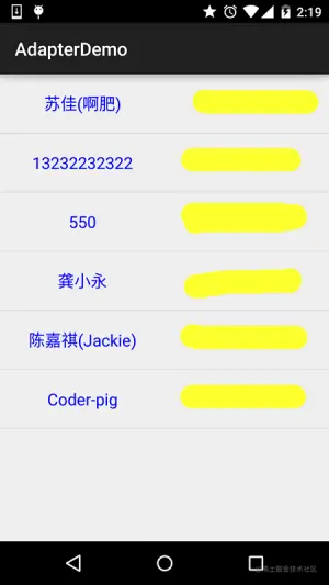 - SimpleCursorAdapter:用于显示简单文本类型的listView,一般在数据库那里会用到,不过有点过时, 不推荐使用!