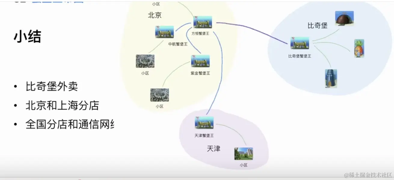 外卖问题:如果每个人都拉一条到分店的线就要很多钱,所以就把每个小区设置一个点,每个人拉到小区点上
