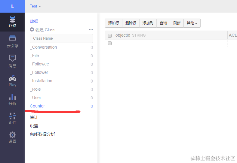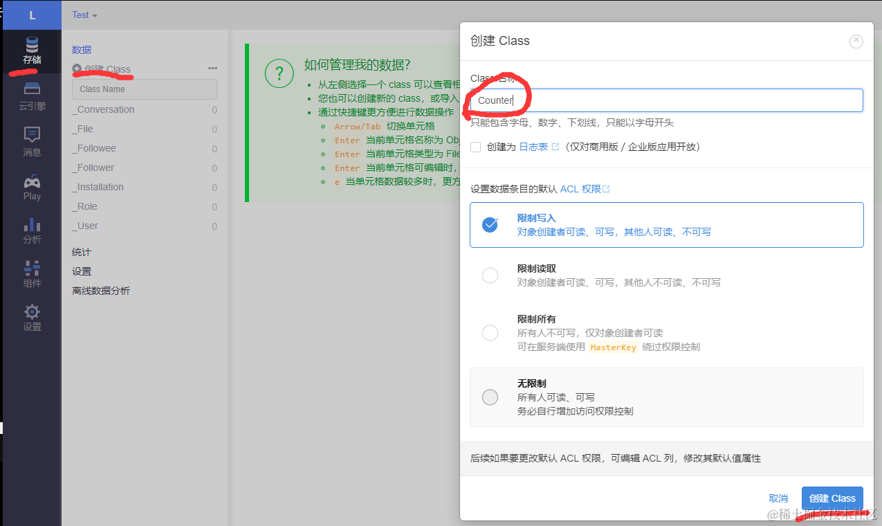 在应用里面创建名称为Counter的Class,名称必须为Counter