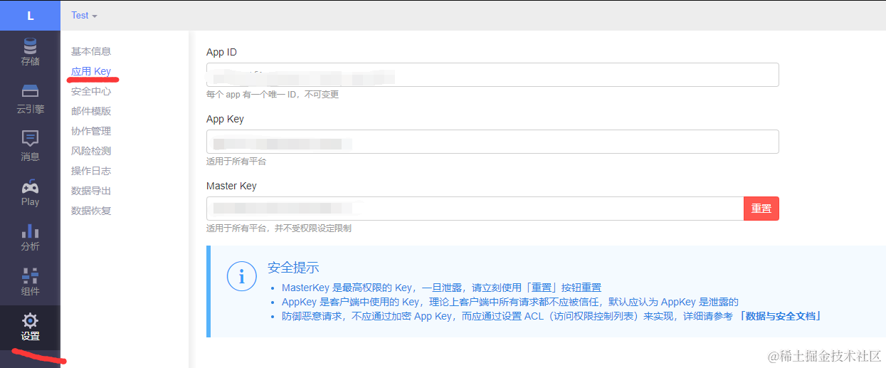 点击设置 > 应用Key 复制App ID 和 App Key