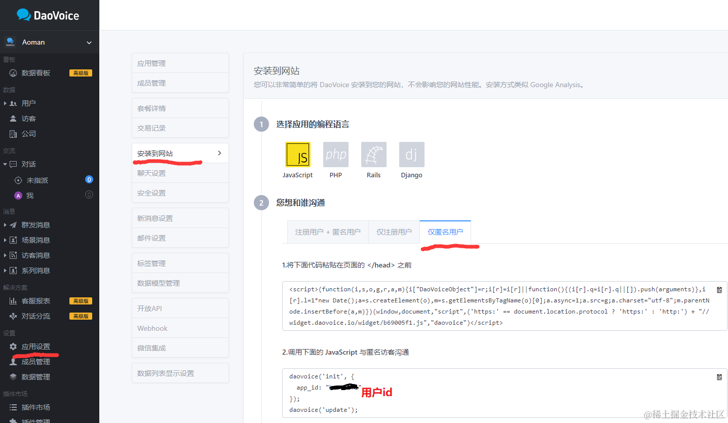 daovoice_app_id: 用户ID