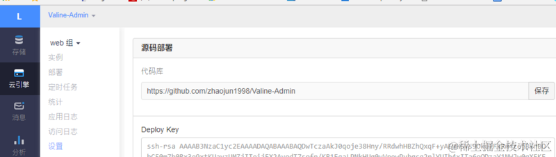 点击 云引擎 -> 设置 填写代码库:https://github.com/zhaojun1998/Valine-Admin,保存