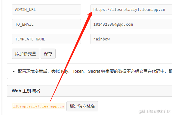 ADMIN_URL https://xxx.leanapp.cn/ [建议] Web主机二级域名,用于自动唤醒