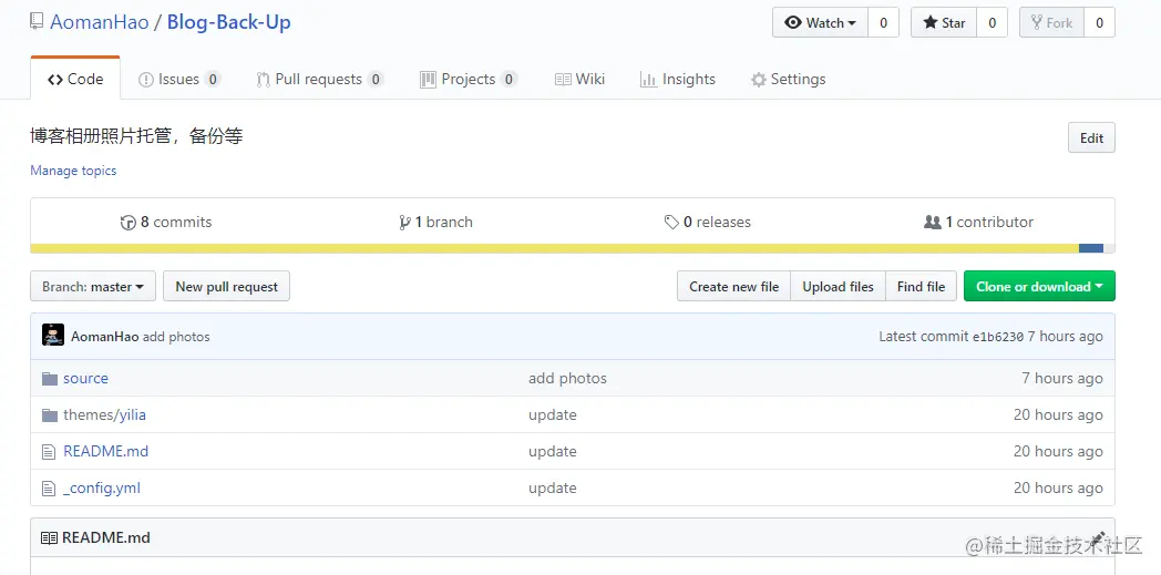 source文件夹是备份图片,theme是备份yilia配置文件等