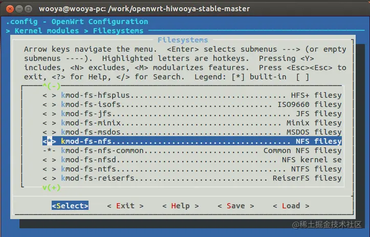 选择Kernel modules ---> Filesystems ---> kmod-fs-nfs