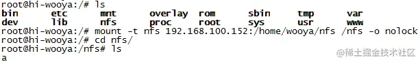 mount -t nfs 192.168.100.152:/home/wooya/nfs /nfs -o nolock