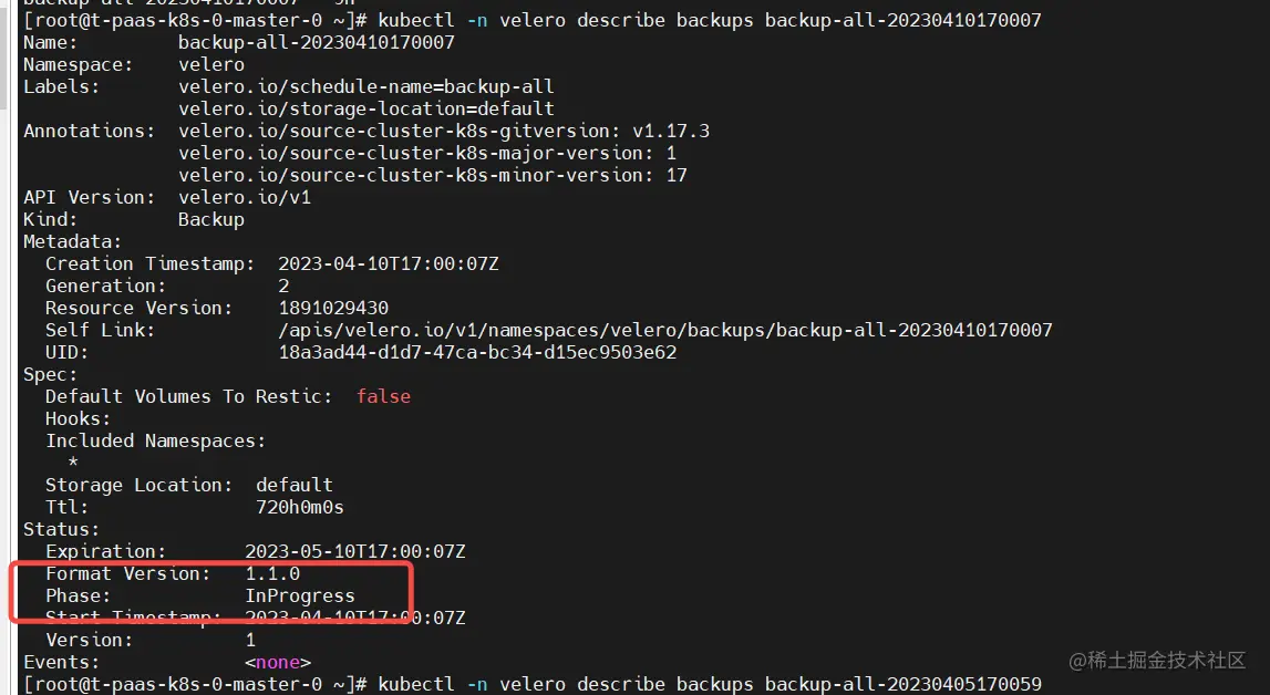 # velero backup logs backup-all-20230410170007 Logs for backup "backup-all-20230410170007" are not available until it's finished processing. Please wait until the backup has a phase of Completed or Failed and try again.发现只有完成的或失败的,才能看日志,InProgress状态的不能查看日志