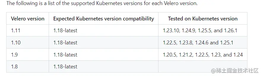想要升级velero,结果发现我们的k8s集群版本是1.17,velero1.8要求k8s在1.18以上,无奈作罢。
