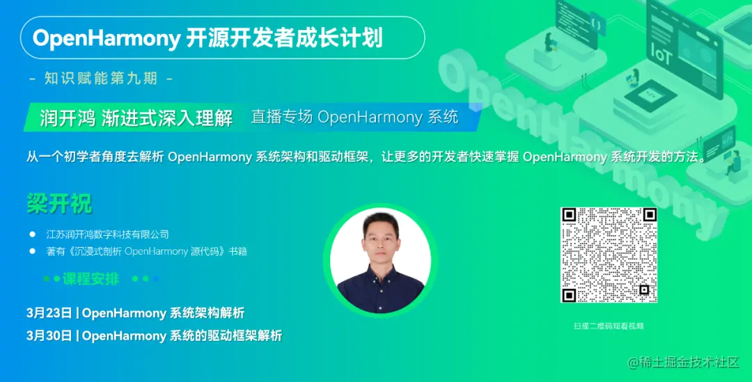 成长计划知识赋能直播第九期如约而至,面向OpenHarmony初中级开发者,解析OpenHarmony系统架构和驱动框架,助力开发者快速上手OpenHarmony系统开发。