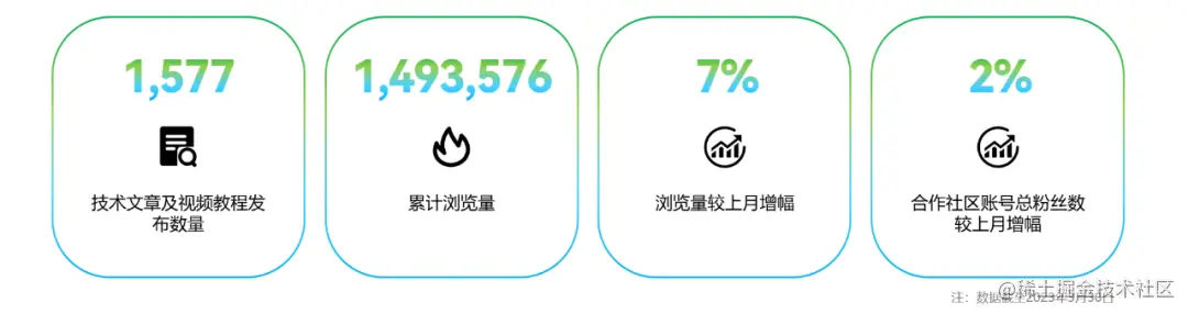 截至2023年3月30日,9个合作社区共发布内容(含技术文章、视频教程)1,577篇,累计获得总PV/UV数1,493,576,同比上月增长7%,账号获得粉丝数1429人,较上月增幅2%。