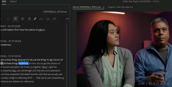 同时,公司表示这项功能代表着影视后期工作流的突破性转变,Premiere也是专业剪辑软件中唯一一家提供基于文字编辑视频功能的软件。随着视频剪辑的难度降低至等同于编辑文本(复制+粘贴),创意工作者的工作流程也将发生彻底改变。