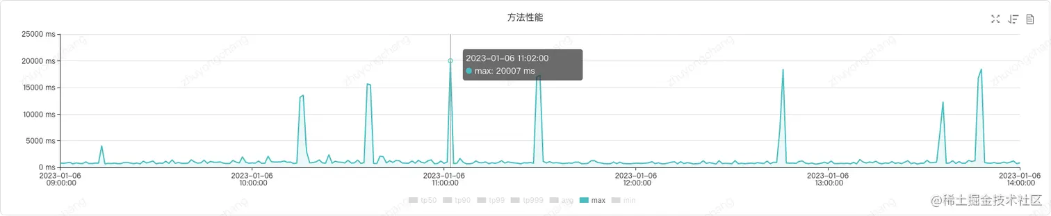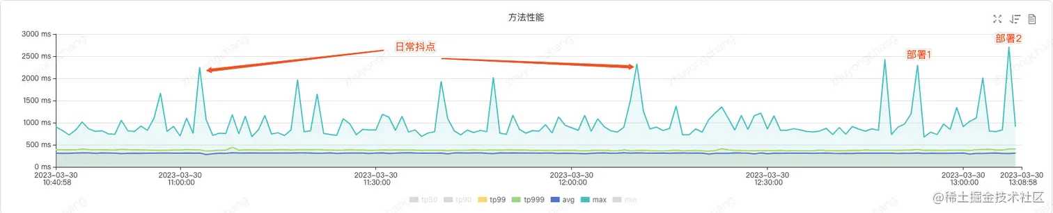 使用本文提供的预热工具,预热前后对比效果明显,如上图所示,调用方方法性能MAX值从原来的10000ms-20000ms降低到了2000ms-3000ms,已经基本接近日常MAX抖点。