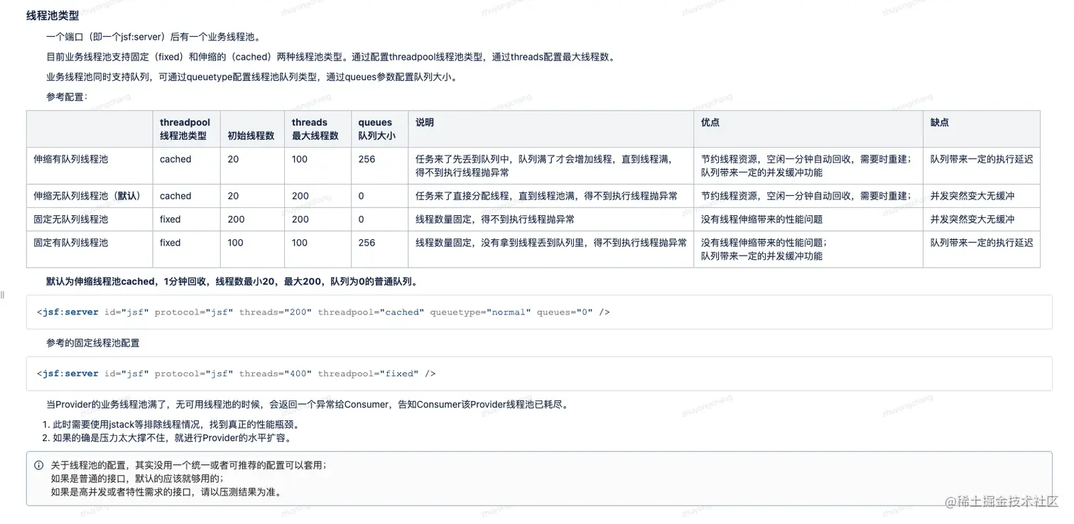 另外,JSF官方文档关于线程池的说明如下: