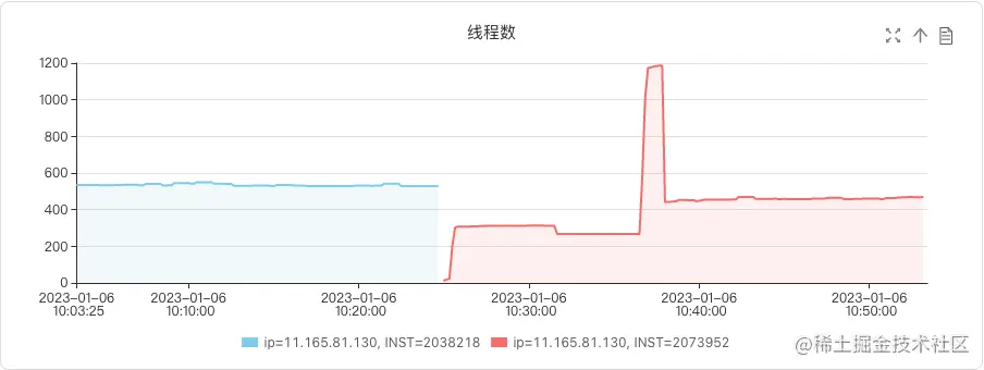 线索二:JSF上线瞬间JVM线程数飙升(如图5所示)