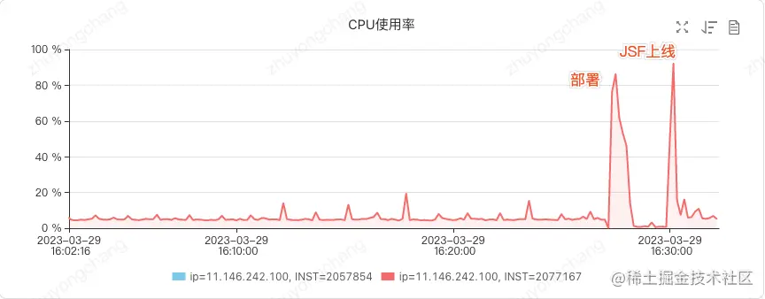 图4 部署和JSF上线瞬间均导致CPU飙升