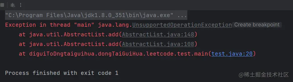 - 使用集合的修改方法: add()、remove()、clear()会抛出异常。