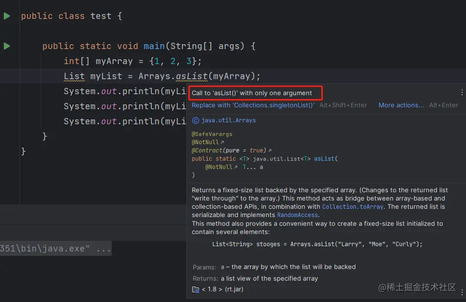 - Arrays.asList()是泛型方法,传递的数组必须是对象数组,而不是基本类型。