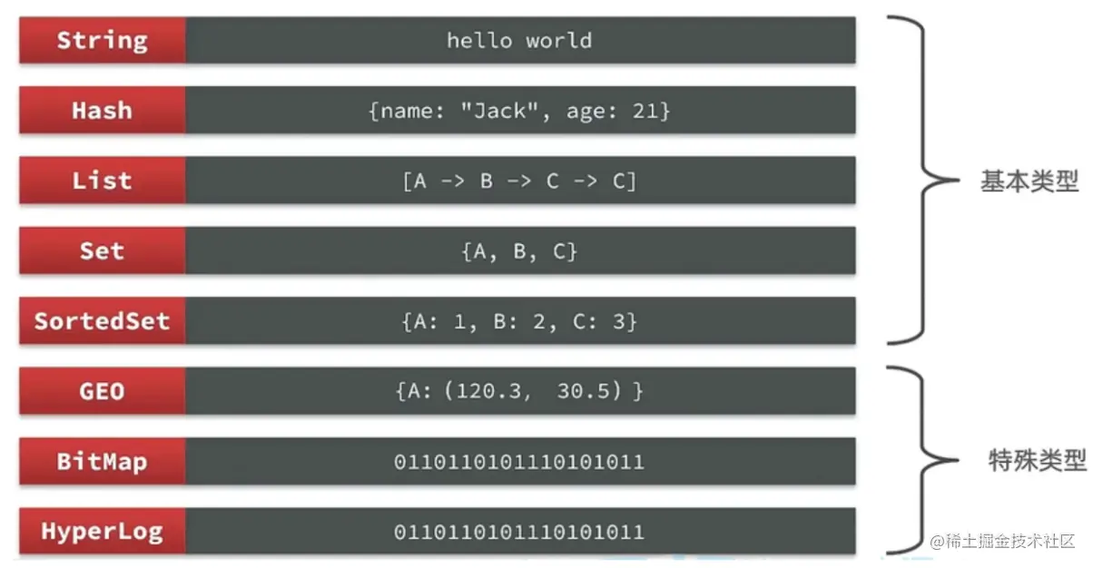Redis是一个key-value的数据库,key一般是String类型,不过value的类型多种多样: