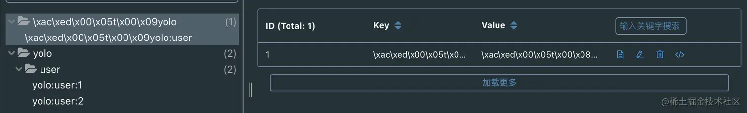 只不过写入前会把Object序列化为字节形式,默认是采用JDK序列化,得到的结果是这样的: