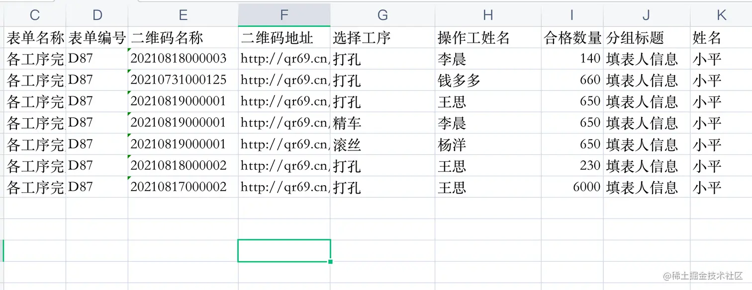 从后台导出工序完工记录数据表,负责人就可以统计出各个员工的工资。(具体结算时还需要补充上各订单各工序的单价)