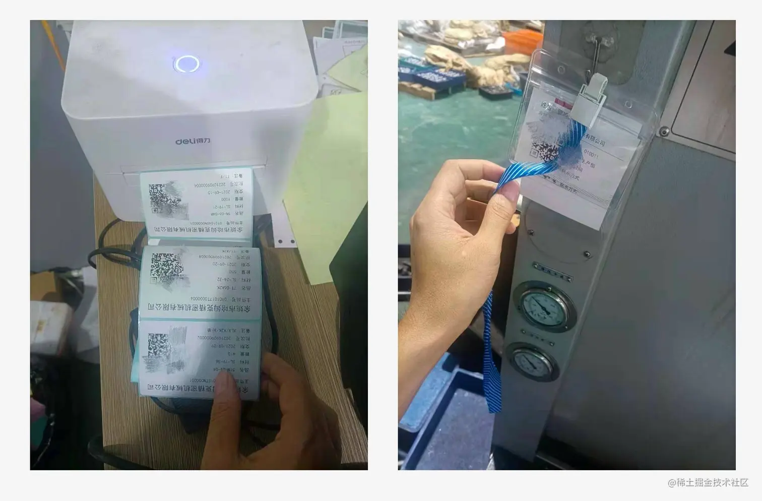 使用标签打印机,批量打印订单二维码,粘贴在设计图纸上,流转到各个工序操作员手上。