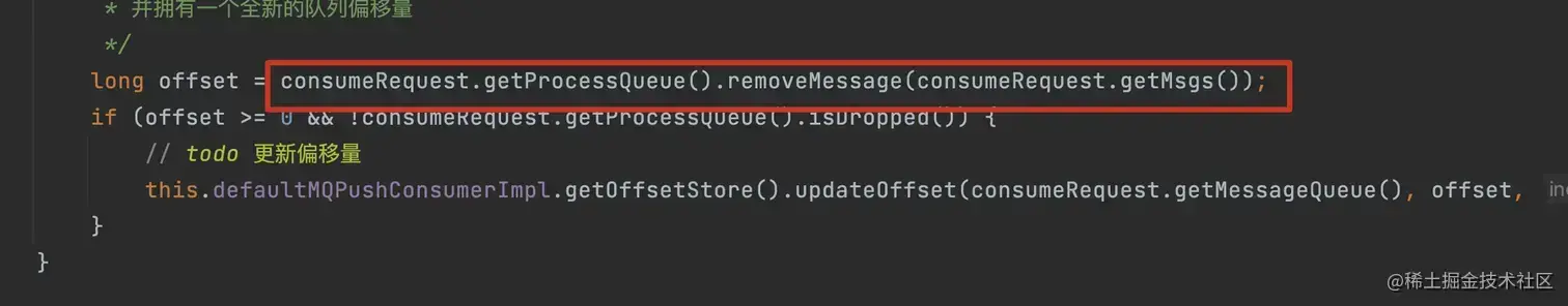 long offset = consumeRequest.getProcessQueue().removeMessage(consumeRequest.getMsgs());