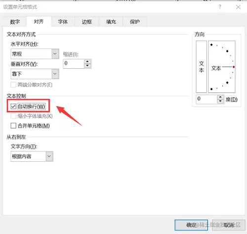 - 勾选 【自动换行】 后单击 【确定】 ;