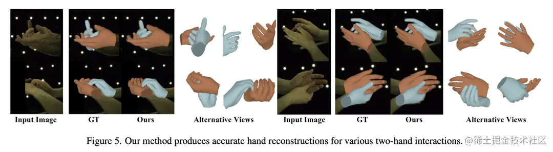 在 InterHand2.6M 数据基准上进行的大量实验证明了我们的方法能达到 SOTA 效果。