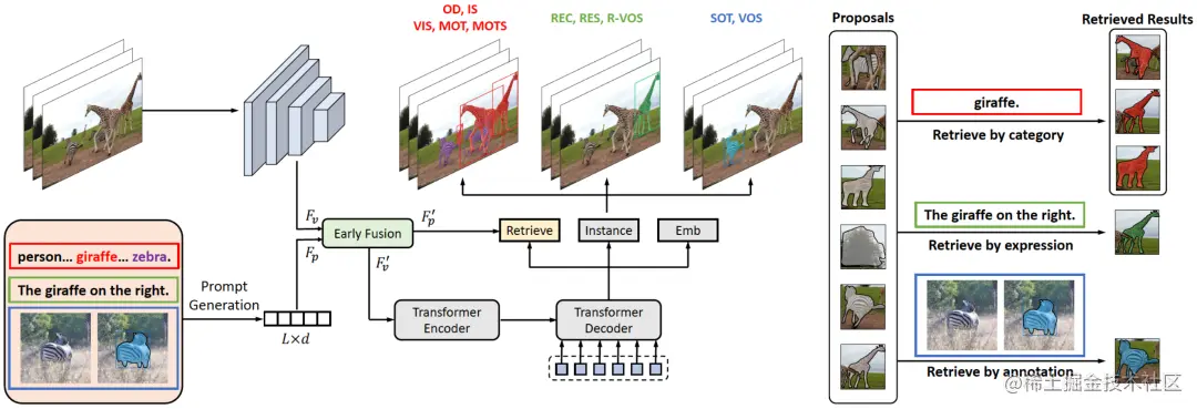 文章将 10 项常见的实例感知任务统一成了一种提示词引导的物体发现与检索范式,并训练了一个统一模型在来自 10 项任务的 20 个富有挑战性的数据集上取得了优异的性能。