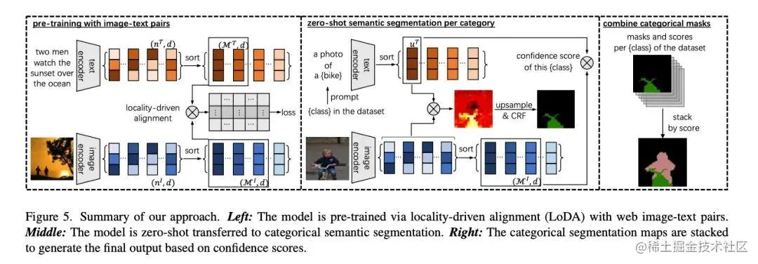 本文表明了最基本的图文预训练模型 CLIP 本身就具有文本监督语义分割能力。首先,我们揭示了原版 CLIP 模型在定位和分割上的缺失,因为它的优化是由密集对齐的视觉和语言特征驱动的。其次,我们提出局部对齐(LoDA)的学习方式来解决这个问题,让 CLIP 的优化由稀疏的局部表示进行驱动。最后,我们提出了一个简单的分割框架(SimSeg)。LoDA 和 SimSeg 共同改进了 CLIP,从而得到精细准确的语义分割结果。