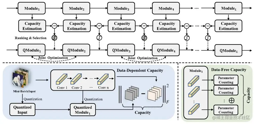 作者提出了混合重构粒度算法 MRECG。通过估计相邻模块的能力差异,排序并选择 Top-k 差异较大的邻接模块在量化过程中进行联合优化来抹平这种振荡。此外,作者在有数据和无数据两种场景分别提供了基于 loss 和基于 ModCap 指标的两种模块能力估计方式。