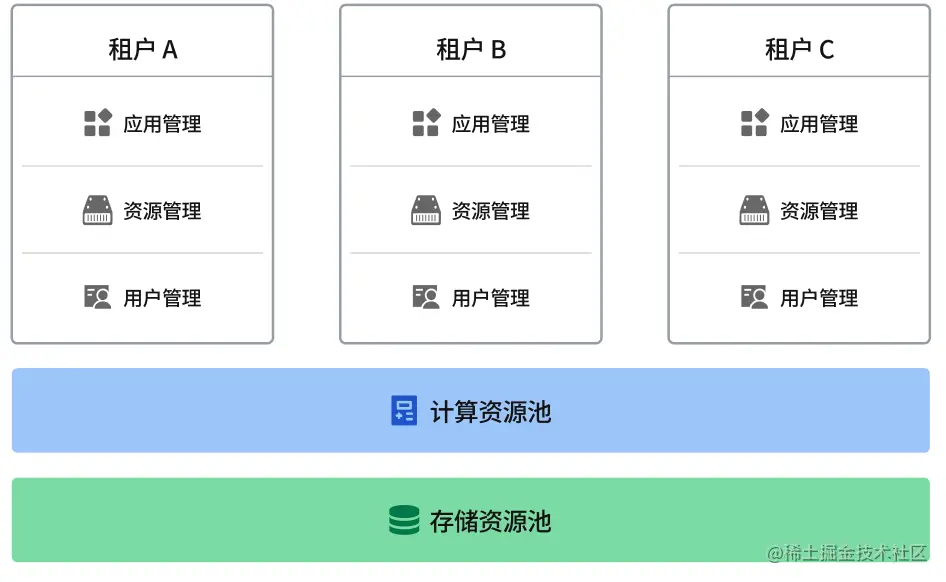 ByteHouse 的计算资源、数据资源、作业任务和用户权限都用租户进行隔离,所有的数据对象和资源都在一个租户内部进行管理。