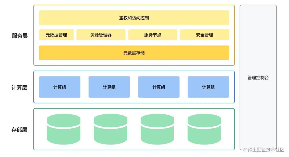 服务层包括了所有与用户交互的内容,包括用户管理、身份验证、查询优化器,事务管理、安全管理、元数据管理,以及运维监控、数据查询等可视化操作功能。