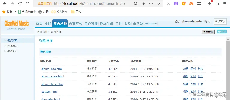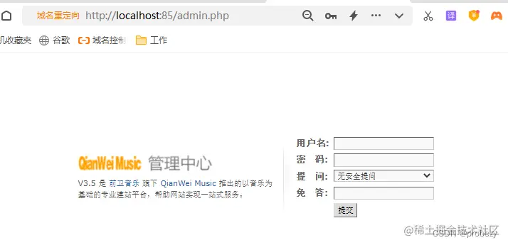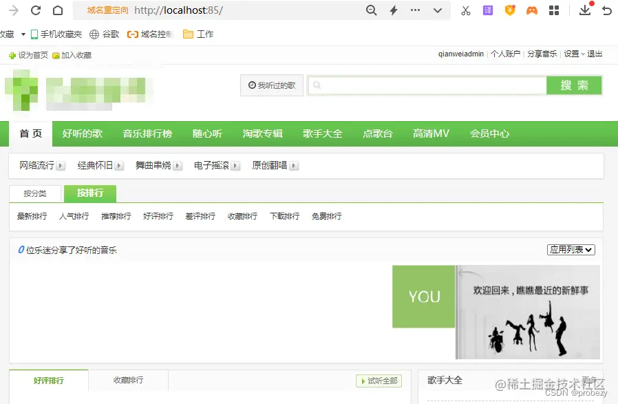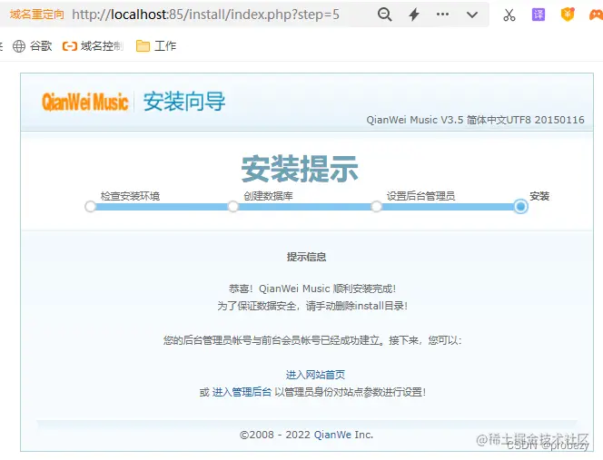 完成这几步后,我们就在本地电脑上成功安装了QianWei音乐网站,我们可以通过localhost:85(自设的端口号)登录本地网页前台进行访问,也可以输入localhost:85/admin.php登录网站后台进行管理。