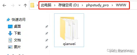 网站源代码下载完成并解压后,会生成包含网站运行文件的文件夹,我们需要将这个文件夹整个复制到PHPstudy的“WWW”文件夹下,为之后的构建网页运行环境做好准备。