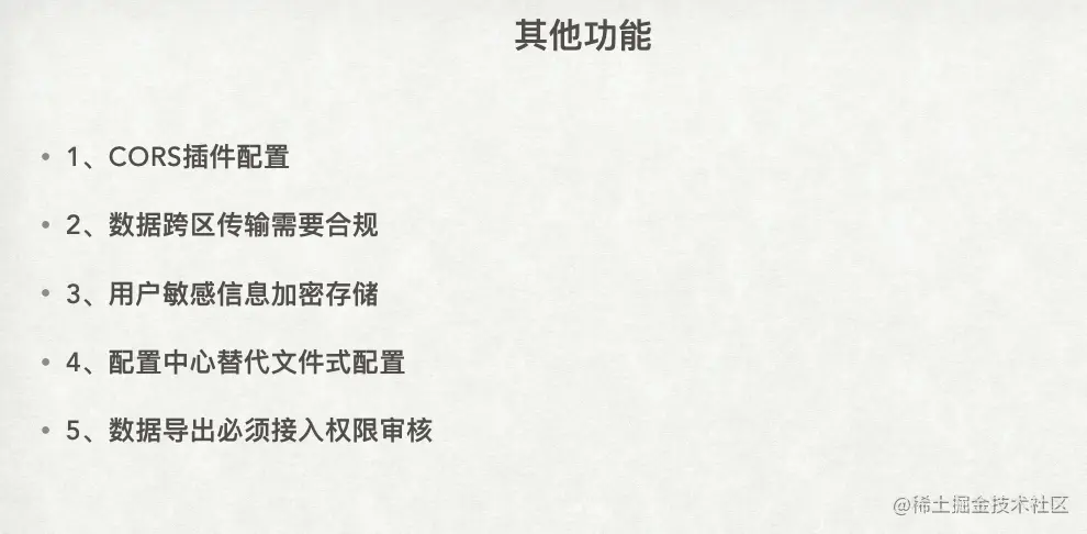 最后要提到的一个功能点是网关的安全性,这在之前的分享中也提到过,安全性是一个不可忽视的问题。网关的安全性可能会导致公司陷入法律诉讼等严重问题,因此需要引起足够的重视。