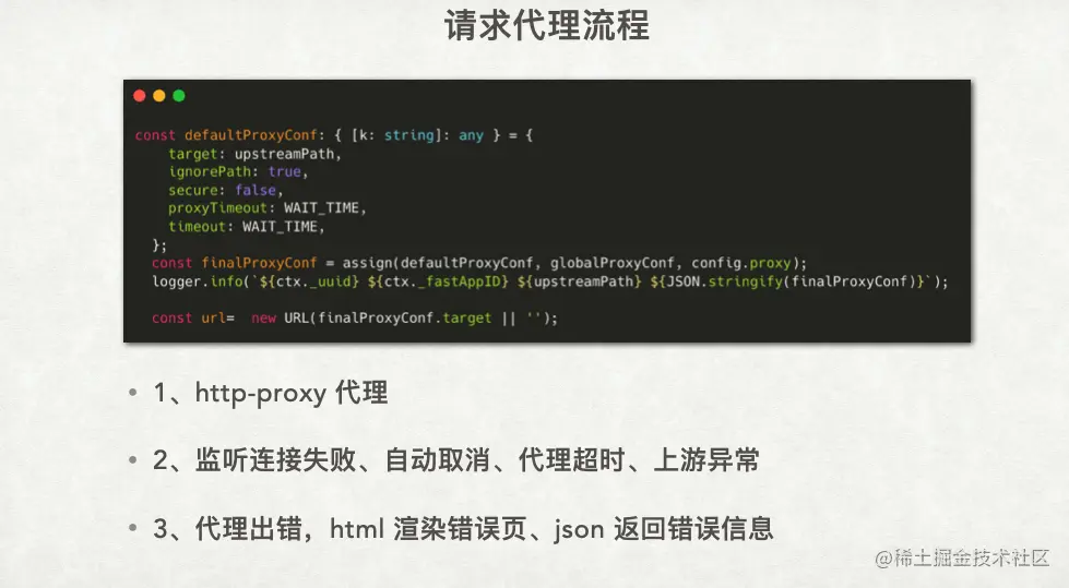 对于熟悉 Node.js 并且有前端插件编写经验的人来说,可能会对这一过程更加了解。 通过 http-proxy 将上游请求代理到指定的下游服务,核心代码如上所示,官方文档中还包含其他用法,其实都大同小异。