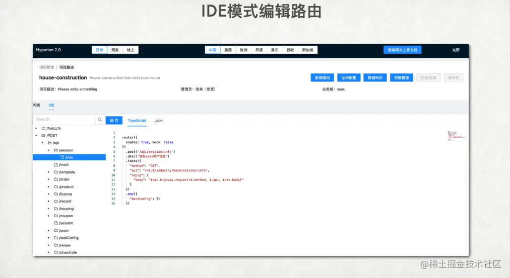 这种编辑模式类似于使用 Web IDE 进行编辑,编写路由、网关和配置信息。通过这种方式,用户可以在不同的区域内同步数据,并且系统会生成 diff 操作,方便用户了解修改的内容。