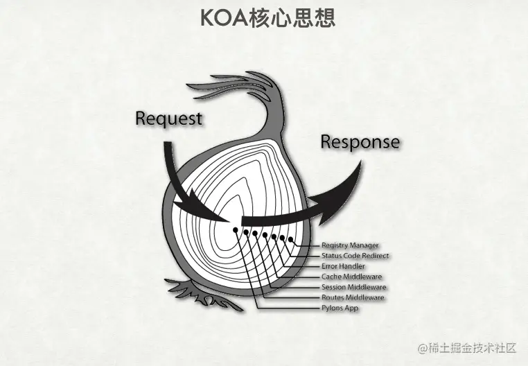 我们借鉴了 Koa 框架的核心思想,即通过在请求或响应阶段的任何一层,附加一个类似于 AOP 的思想,在任何一层进行拦截和处理。