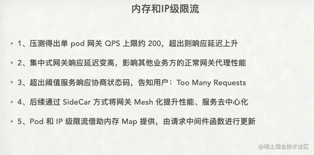 最后,安全性还涉及到内存级别和 IP 级别的限流。