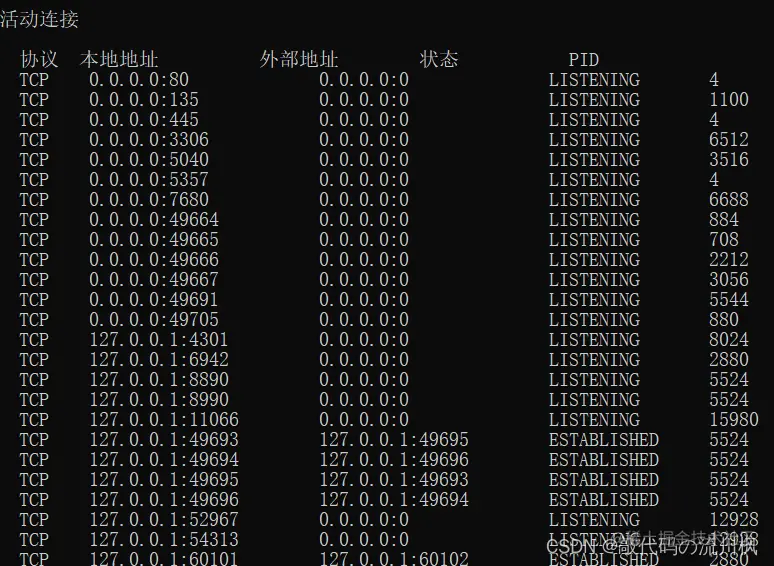 可以在cmd中,输入 netstat -ano 查看网络数据传输中的五元组信息:编辑