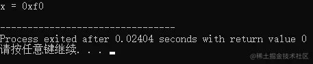 printf("x = 0x%0x\n",x); // 0b1111 0000