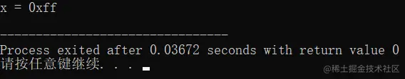 printf("x = 0x%0x\n",x); // 0b1111 1111
