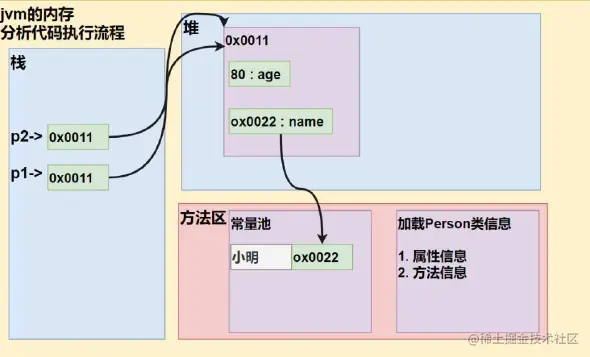 1.加载Person类信息(Person.class) 到方法区,只会加载一次