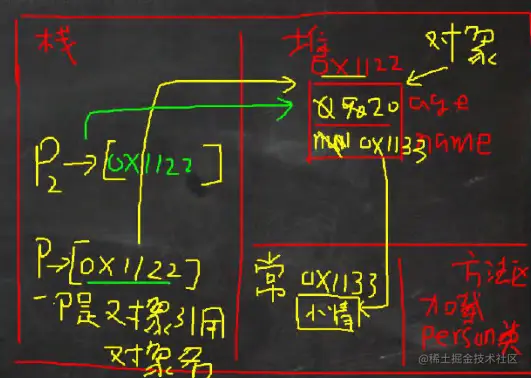 4.在对象在堆中的地址,返回给p(p是对象名,也可以理解成是对象的引用)