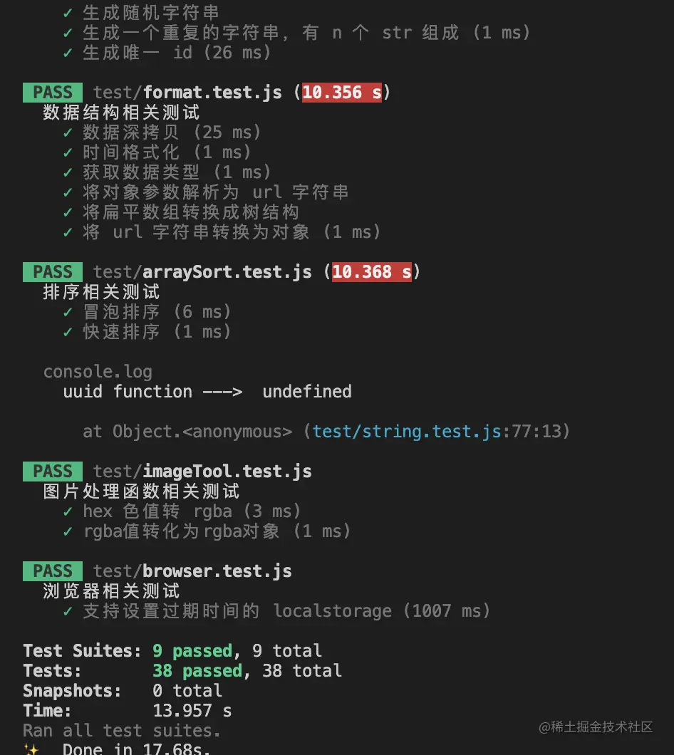 整个测试一共花了17.68s, 测试全部通过, 各位小伙伴们可以放松食用.