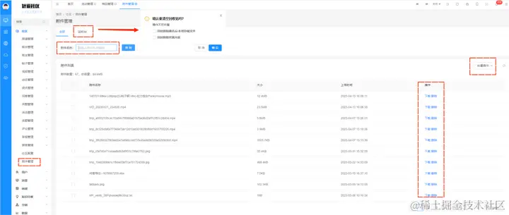 附件管理中包括用户已经发布的内容中包含的附件,也包括用户尚未发布成功内容,但已经上传了附件的附件。