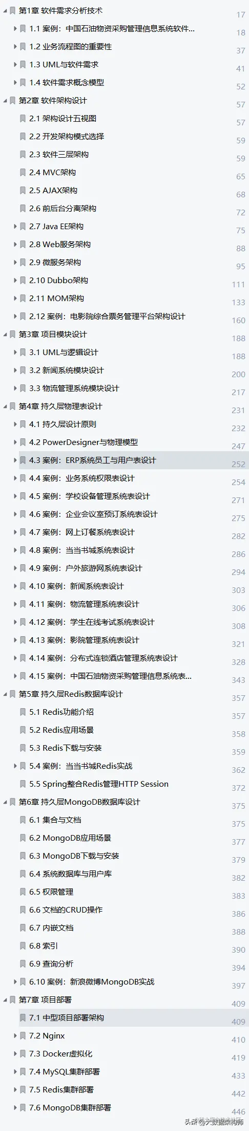 本文档面向软件工程项目实战,内容按照软件项目的生命周期展开,分别为软件项目需求分析、软件项目架构设计(开发架构模式为主)、软件项目模块设计、软件项目的持久层设计(关系型物理表设计、Redis设计、MongoDB设计)、软件项目的部署等。