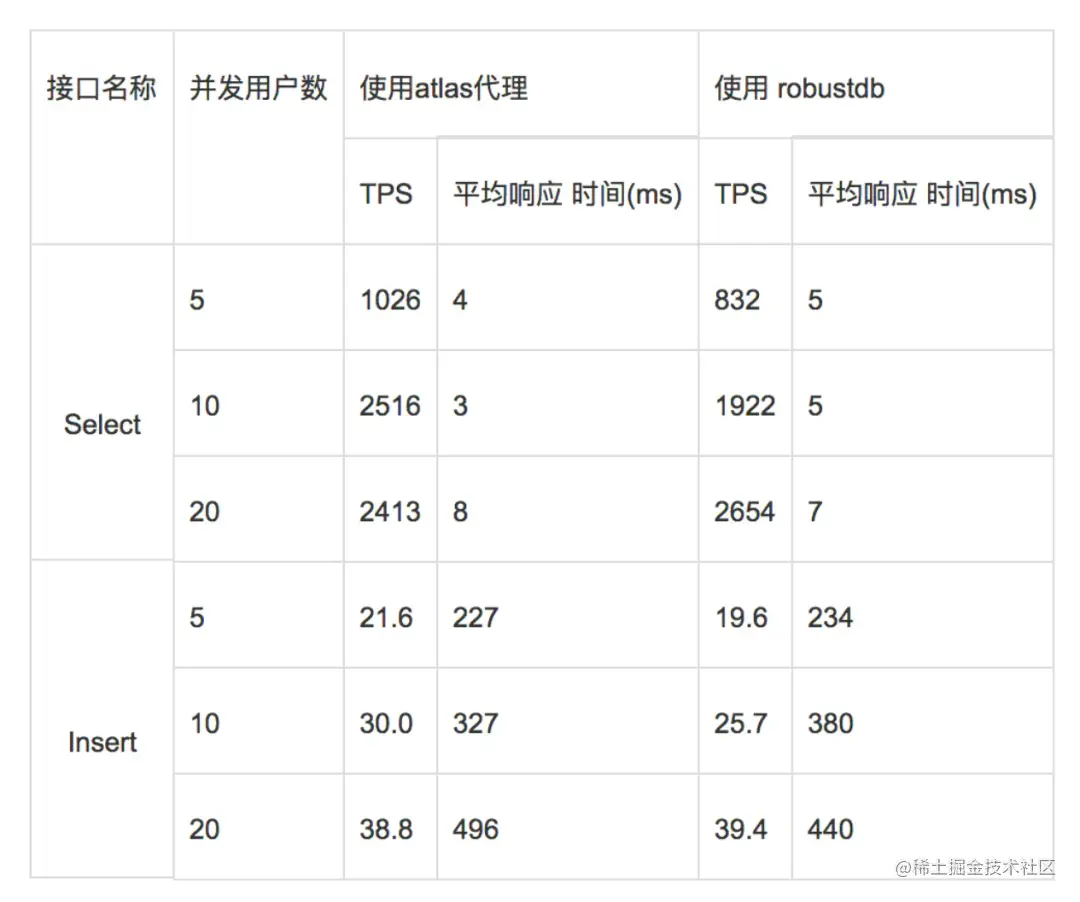 我们经过性能测试,发现 Robustdb 的性能在一定层度上比 Atlas 性能更好。压测结果如下: